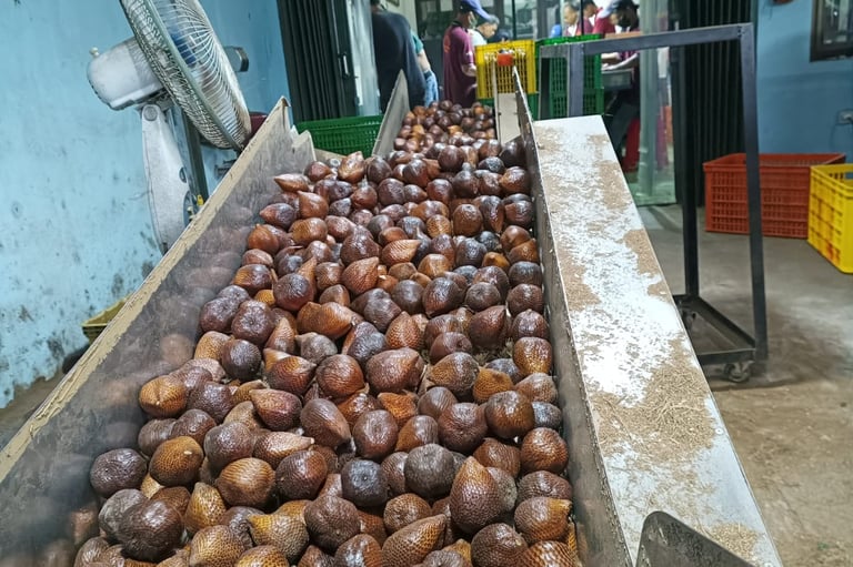 Our journey begins in the fertile salak plantations of Indonesia, where PT Salinov Bintang Mulia’s partnered farmers carefully harvest the fruits. With years of experience, they know the exact maturity level required for export. Only well-ripened fruits are selected to ensure the best taste, aroma, and texture. By sourcing directly through PT Salinov Bintang Mulia’s trusted farmer network, we guarantee freshness and full traceability.